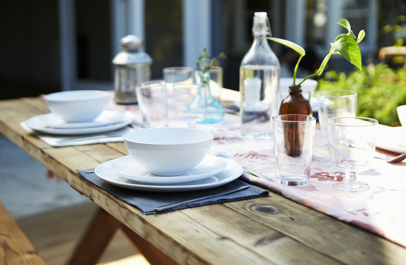 As well as using one through the center of the table, consider laying a series across the table's width, linking the place settings of diners sitting opposite one another to help encourage conversation with those across the table as well as those seated on the same.
